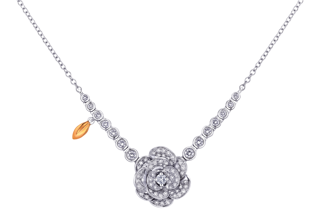 一片片鋪滿耀眼閃鑽的立體花瓣,完美的鑲嵌工藝展現花朵嬌媚的形態,同時襯托出現代女性堅強外表下美麗熱情的特質,是令女士一見傾心的珍貴典藏。